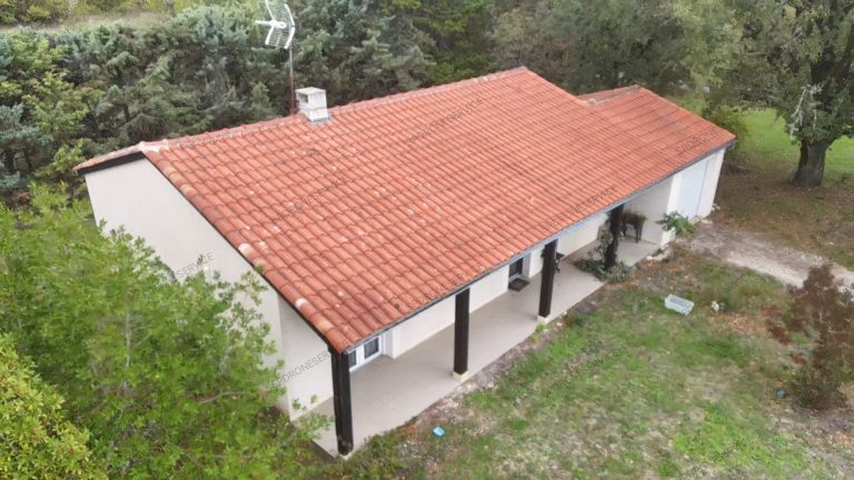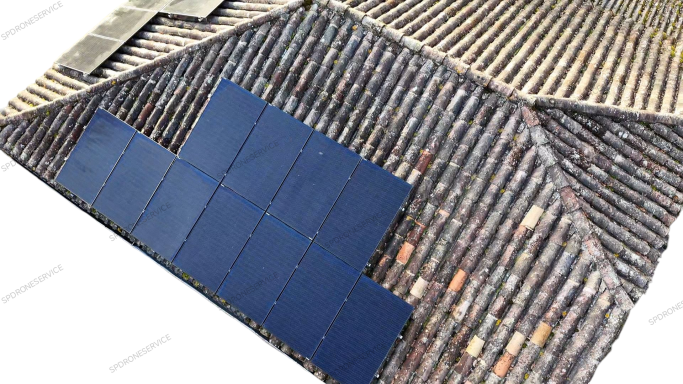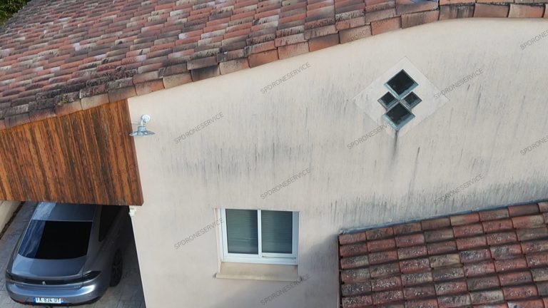 Traitement anti mousse et anti fongique, application par drone uniquement sur cette toiture, le temps continue son travail.