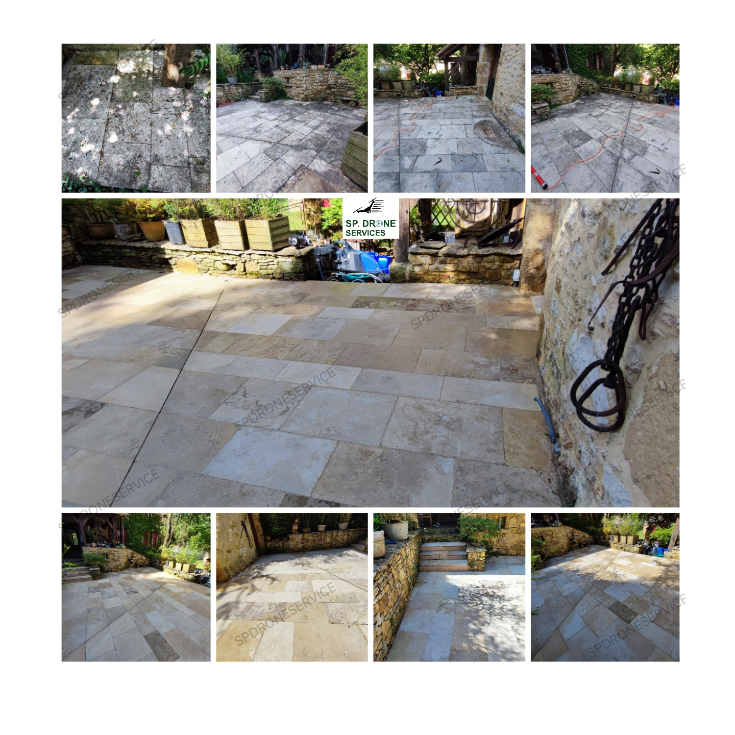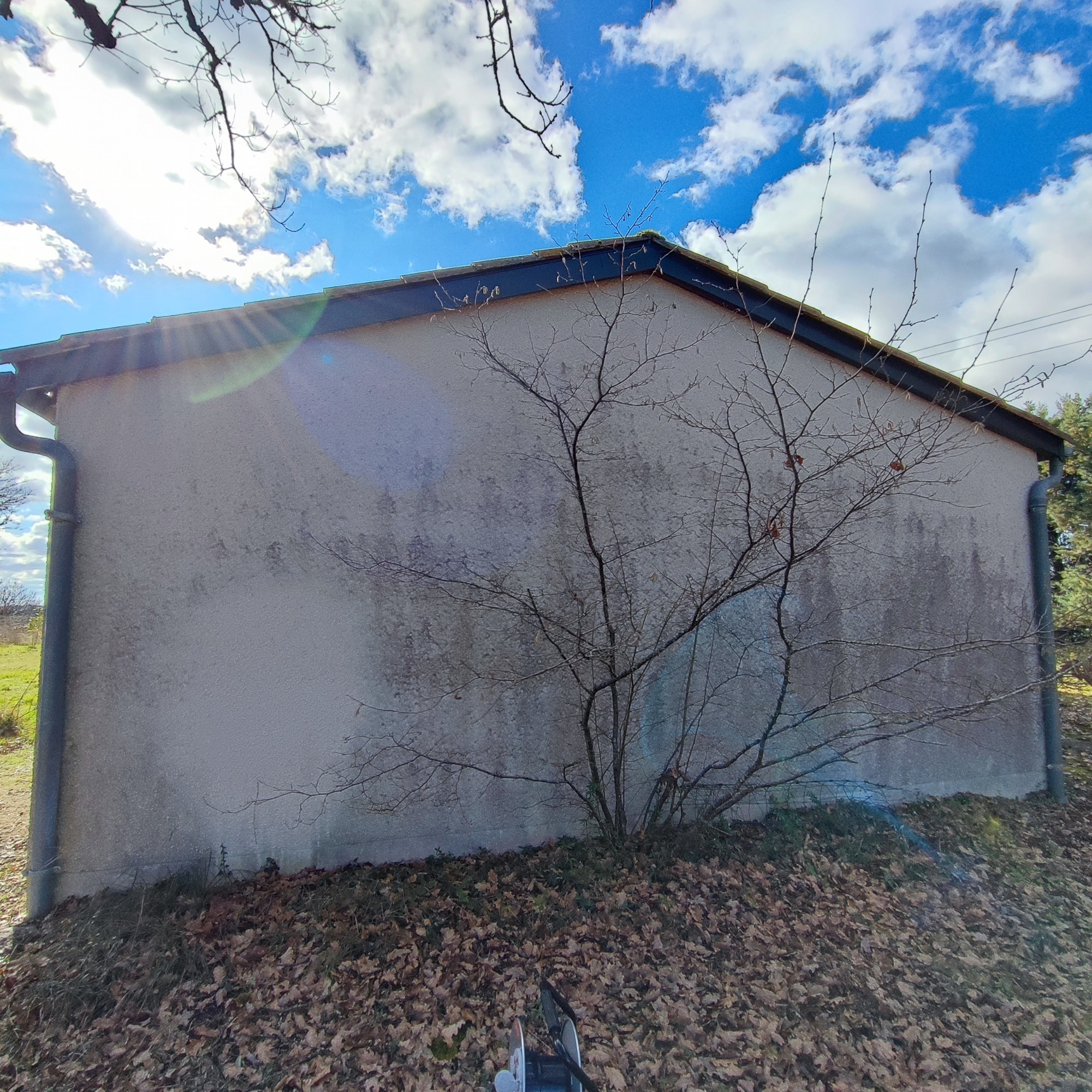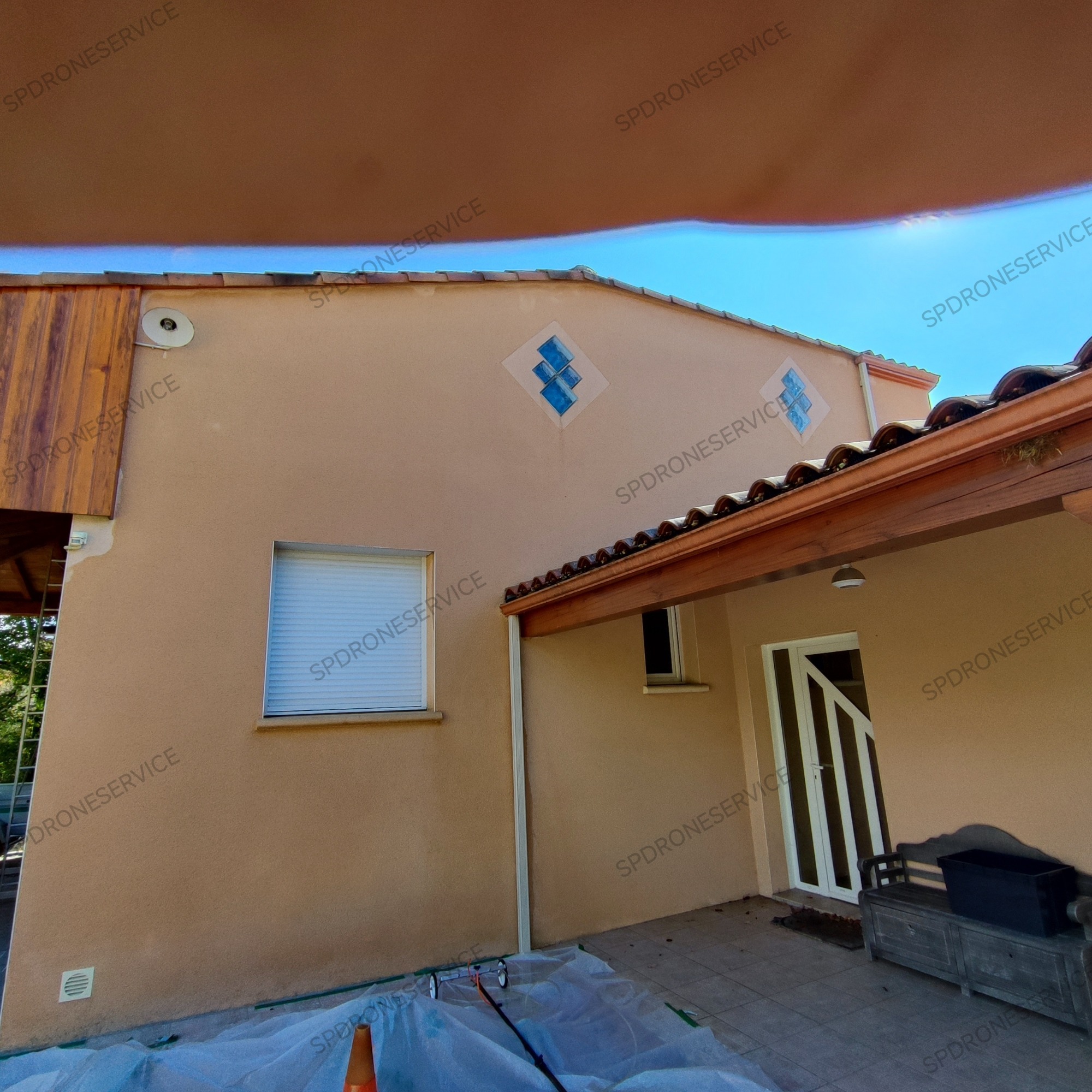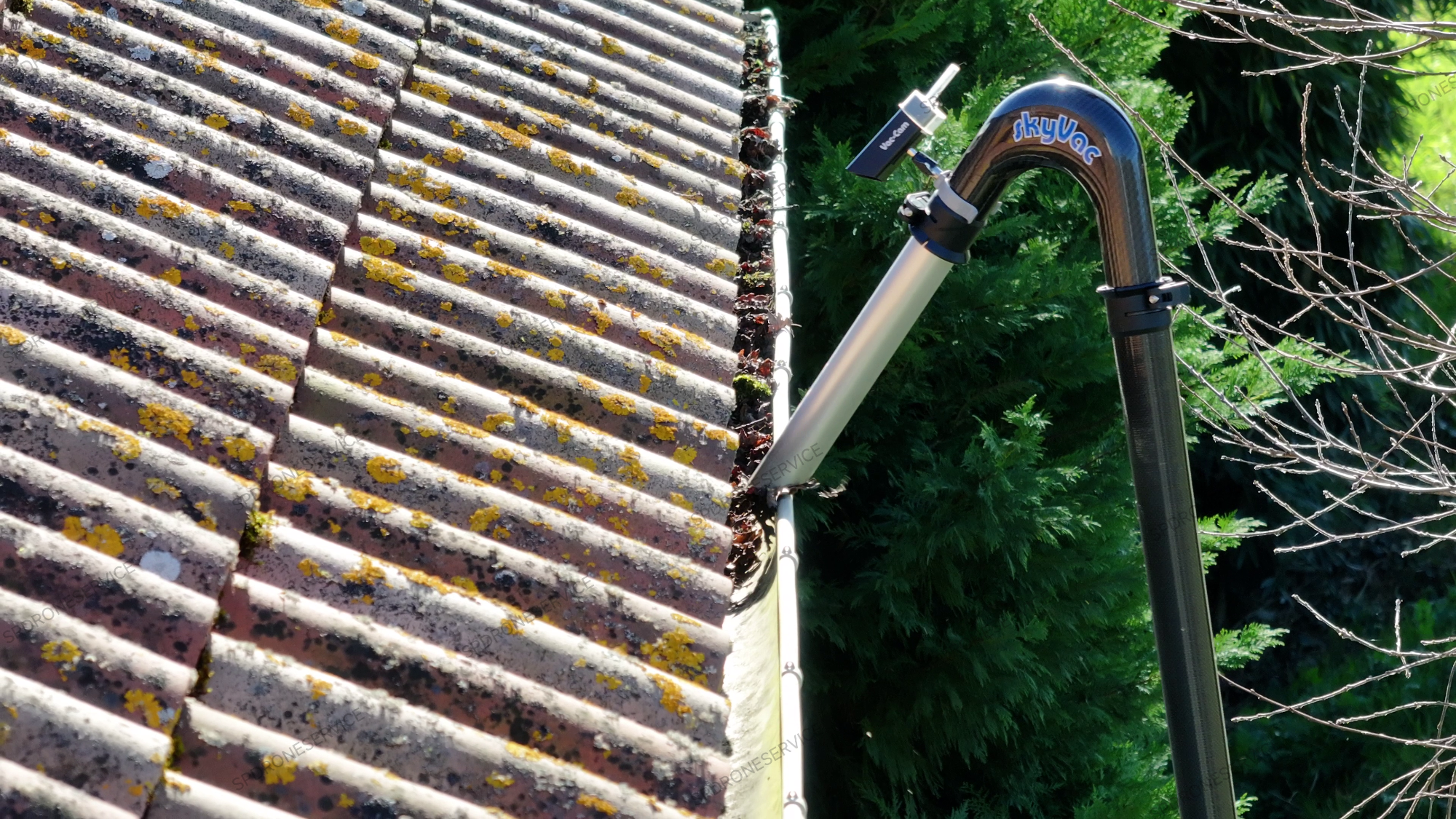 Traitement anti mousse et anti fongique, application par drone uniquement sur cette toiture, le temps continue son travail.