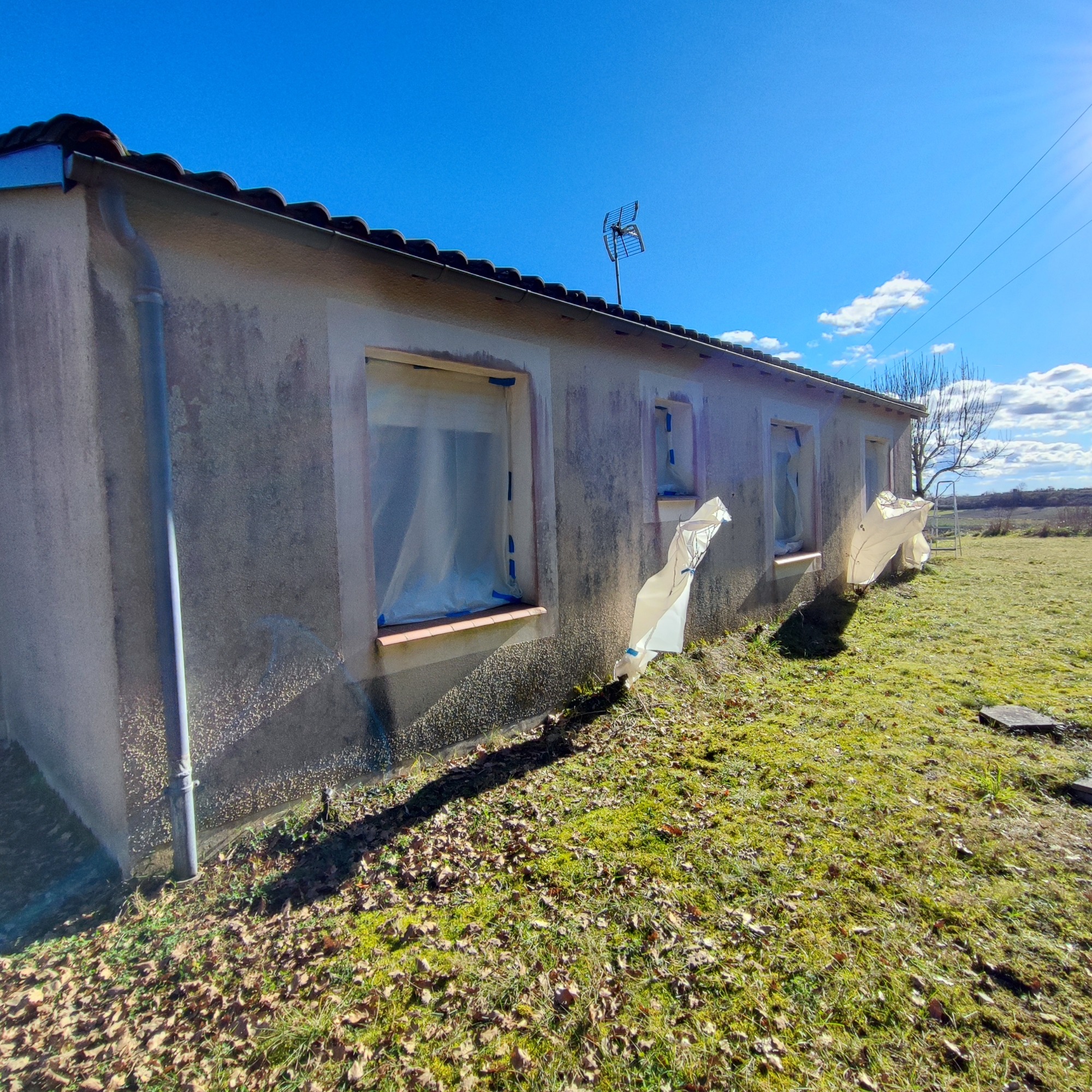Nettoyage d'une façade de maison encrassée, nettoyage à la perche à labastide-marnhac. Produits éco-responsable